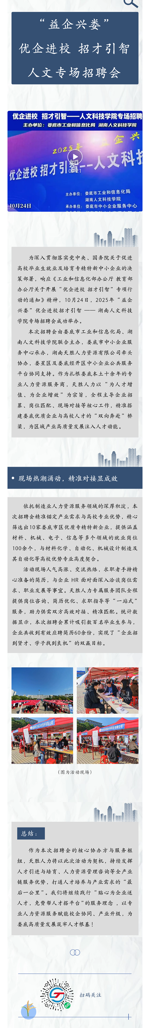 “益企兴娄”优企进校 招才引智 人文专场招聘会——政策引领聚英才,天胜搭桥促就业